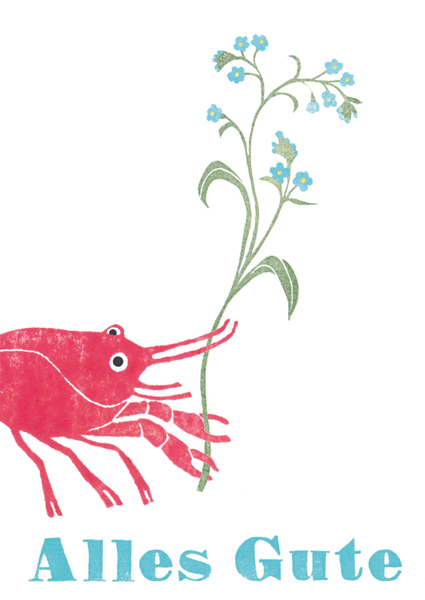 Klappkarte A6, kommt mit passendem hellblauen Umschlag. Recycling Papier und klimaneutraler Druck inclusive.