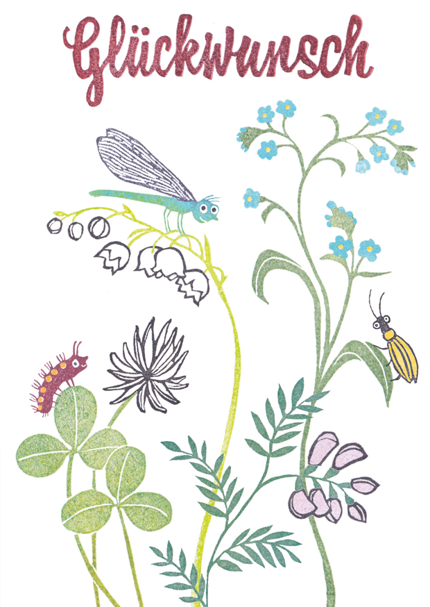 Klappkarte A6, kommt mit passendem lila Umschlag. Recycling Papier und klimaneutraler Druck inclusive.