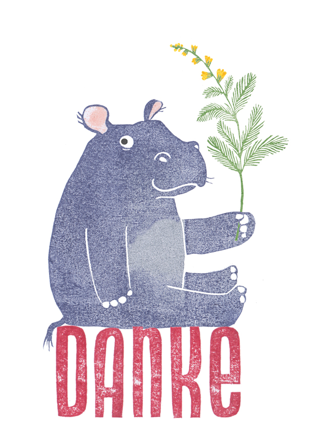 Klappkarte A6, kommt mit passendem hellblauem Umschlag. Recycling Papier und klimaneutraler Druck inclusive.
